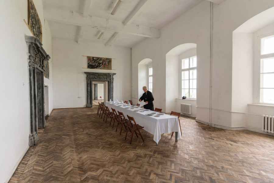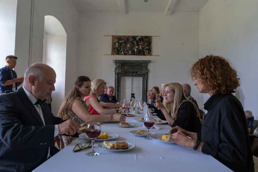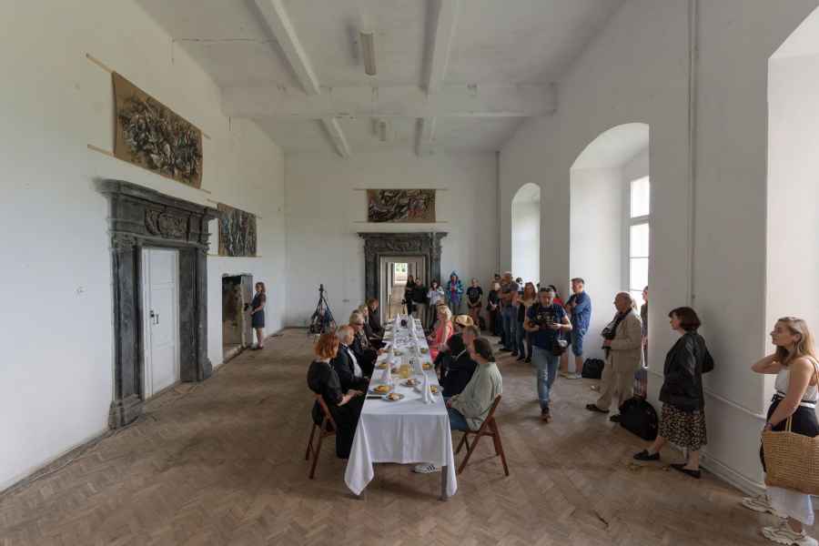 I created a series of images and lined them up in a certain sequence, taking into account both the parity of large and small plates and the parity of reality split into "low" and "high". In such a way, I perceive a weekly re-enactment of the ritual of festive food consumption as a historical ancestral landscape, where each solemn place is marked by an appropriate image*. One should bear in mind such a place can be both an elevation spot and a shell hole (as sacred and ignominious as the pubis (sic!)). It is not by chance that in Ukrainian, the Frontal Place, the Place of the Skull sounds similar to a Pubic Place – Lobne Mistse).
